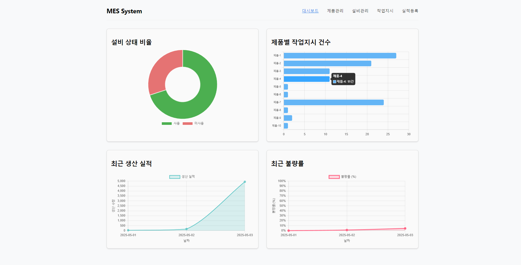 - 더미 데이터가 아닌 실시간 생산실적 및 설비 데이터를 기반으로 차트 동작 확인